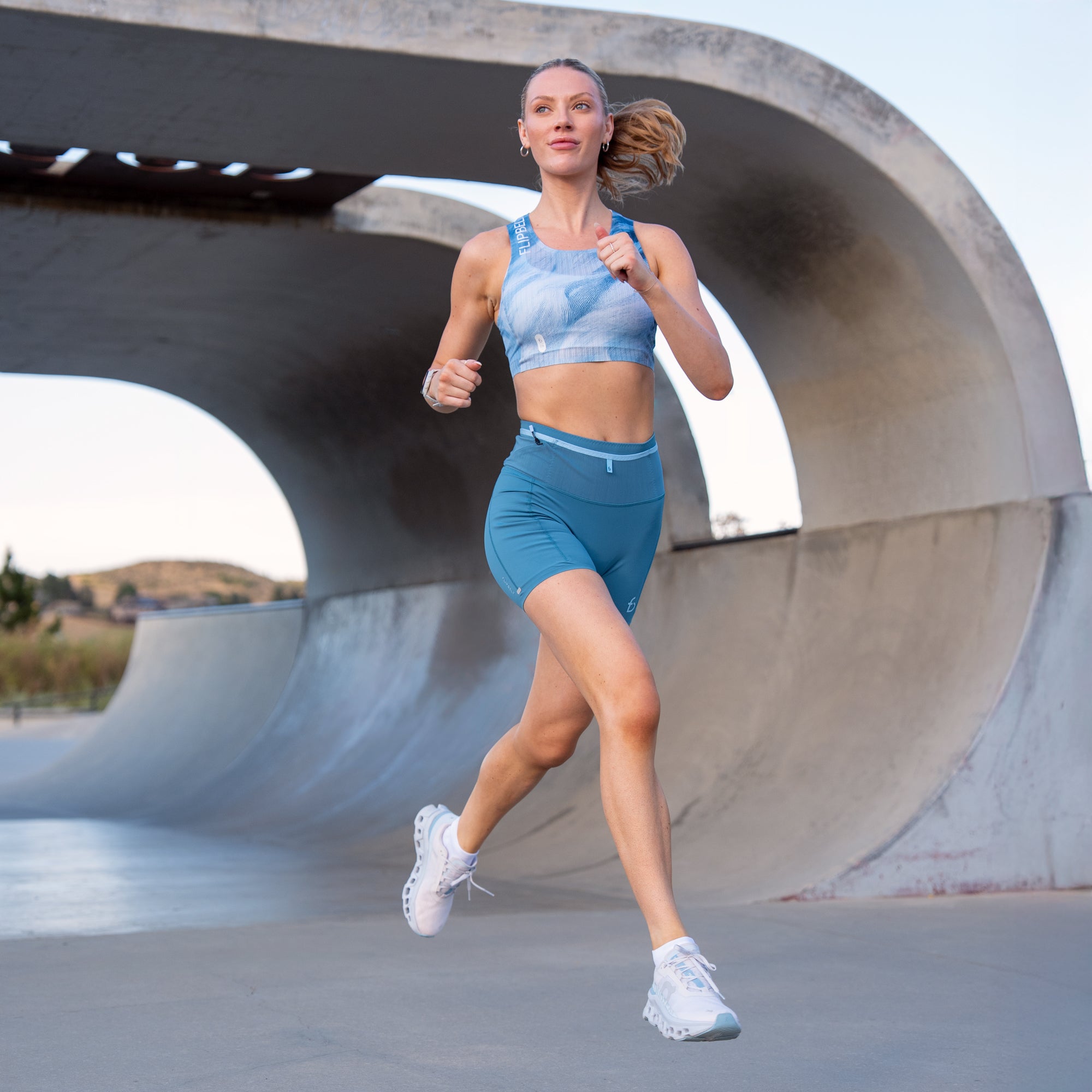 Full-circle waistband secures phone, 11oz Arc Bottle, and fuel—bounce-free.
